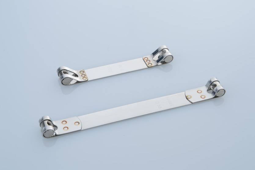 Bandmaterial: DIN 1.4301, Banddicke 0.4 – 0.8 mm, Bolzen: Messing vernickelt, Schrauben: V2A/V4A